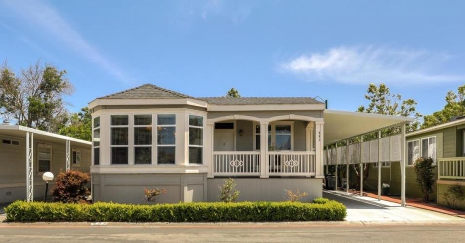 A beautiful and spacious home situated in the desirable, family community of Casa de Amigos. Luxurious design elements include 9' tray ceilings, crown molding, tall baseboards, beautiful wood laminate floors, dual-pane windows, and built-in white shaker cabinetry throughout. The spacious formal dining room has a large bay window. The kitchen boasts a breakfast nook, granite counters, recessed lighting & stainless steel appliances. The large living room offers a gas fireplace & a built-in entertainment center. The main suite has a spacious walk-in closet and connects to a private bath with dual vanities, a garden tub, and a walk-in shower. The large guest bedrooms come with lots of closet space. The home is equipped with central heating and A/C. The laundry room comes with the washer/dryer and extra storage. Close to pool, spa, gym, and guest parking. 2014 Skyline S/N 2G700338GA/B